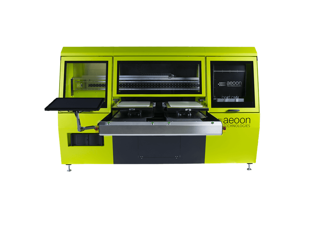 Dòng máy in Compact – in trực tiếp lên vải của aeoon có 2 bàn in phù hợp với các doanh nghiệp có quy mô sản xuất từ vừa cho tới lớn. Được trang bị đầu in Kyocera, thiết bị này không chỉ mang lại chất lượng in tuyệt hảo mà còn tiết kiệm lượng mực đáng kể cho mỗi bản in. Đây là một giải pháp vượt trội cho sản xuất số lượng lớn, đảm bảo tính nhất quán của các bản in trên cùng một thiết kế trong suốt 2 – 3 ca làm việc, và phù hợp cho cả in POD – in theo yêu cầu – nhờ khả năng kết nối linh hoạt với quy trình sản xuất tự động hóa.