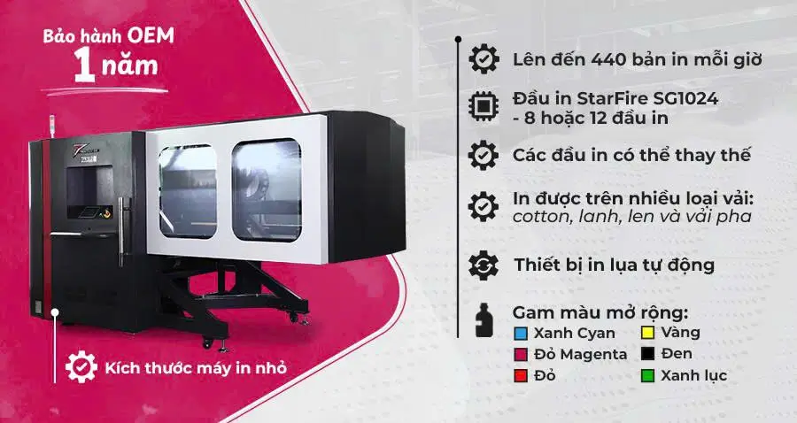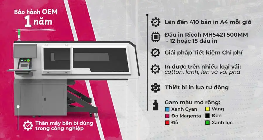 - Tối ưu hóa thời gian chuyển đổi: Không cần thay lưới in, trộn màu phức tạp như in lụa truyền thống.